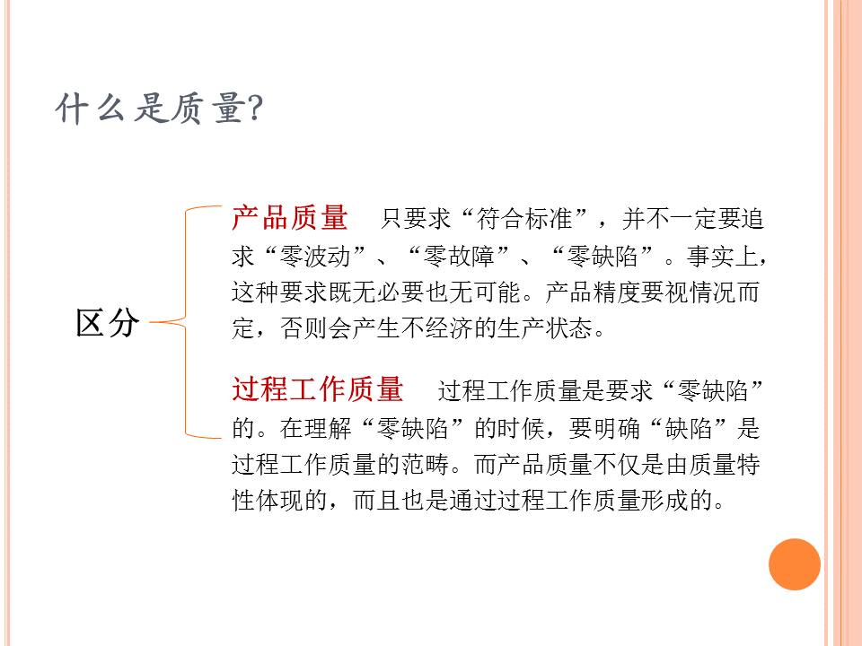 在工作中,零缺陷不僅是一種工作準(zhǔn)則和執(zhí)行標(biāo)準(zhǔn),也是一種工匠精神。零缺陷意味著要從內(nèi)心追求精益求精,要求組織中的每一個成員都要在工作中下決心做到完美無缺。 “零缺陷”的思想是一種新的思維方式,是一種工匠心做事心態(tài),是企業(yè)參與國際市場競爭的有力保障,也是提高個人能力和公司整體素質(zhì),最大限度地發(fā)揮公司整體功能,弘揚(yáng)公司企業(yè)文化的契機(jī)。無論是個人還是組織,只有追求產(chǎn)品的“零缺陷”,才能長久地在該領(lǐng)域立