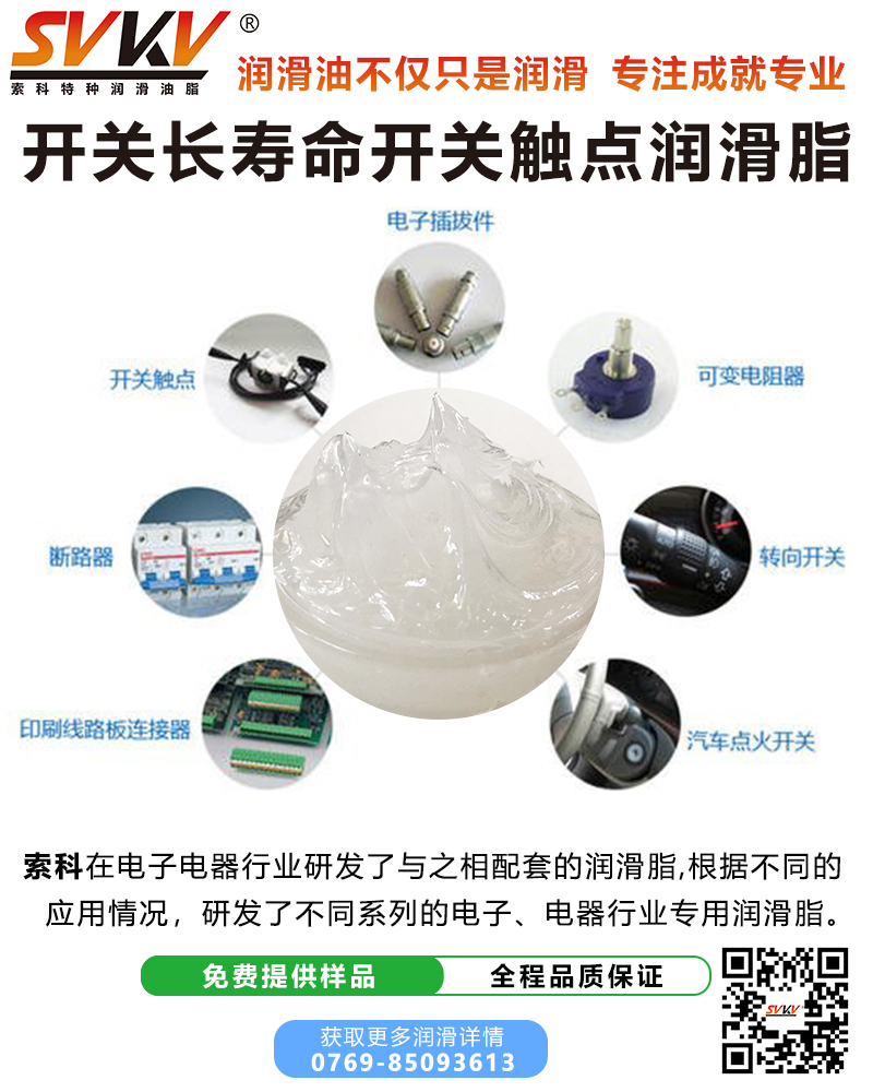 索科SVKV長壽命開關觸點潤滑脂性能優(yōu)點: