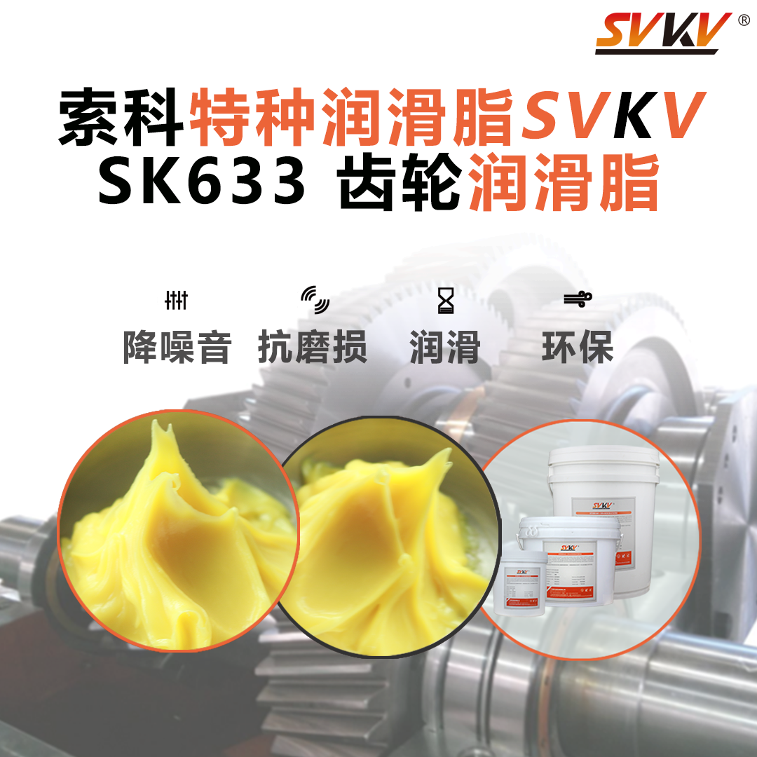 推薦索科SVKV SK633系列齒輪潤滑脂。減少齒輪磨損,降低噪音,達(dá)到長壽命和防水的效果。適用中低轉(zhuǎn)速的齒輪、軸承,塑膠/塑膠、金屬/塑膠的潤滑、消音、降電流等效果。