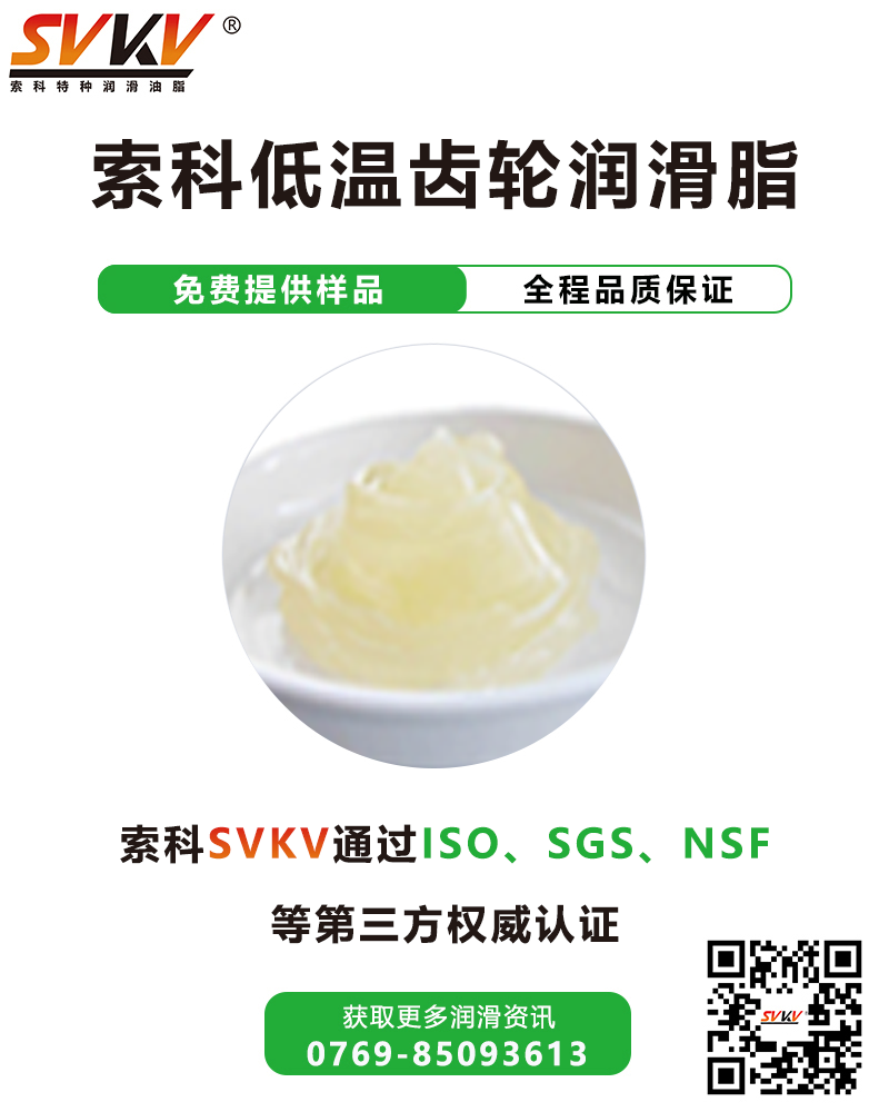 索科SVKV低溫齒輪潤(rùn)滑脂在低溫-60℃度的環(huán)境下仍能有效降低軸承、齒輪及設(shè)備的啟動(dòng)及運(yùn)行時(shí)的扭矩力,是專為嚴(yán)寒地區(qū)產(chǎn)品設(shè)備的齒輪等零部件的潤(rùn)滑而研制的。